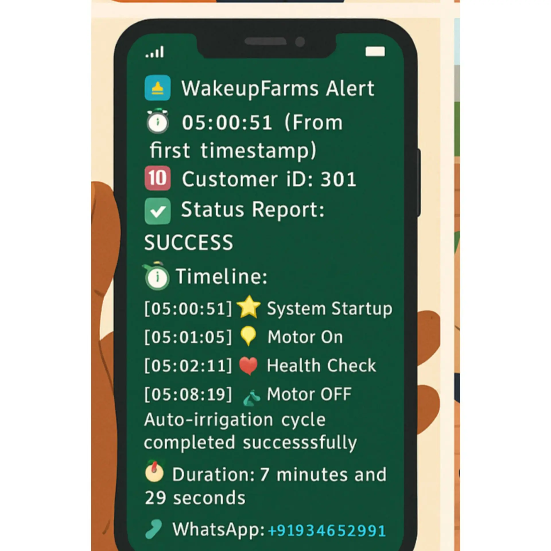 - Remote Monitoring & Control: Stay informed and manage your irrigation from anywhere using WhatsApp.